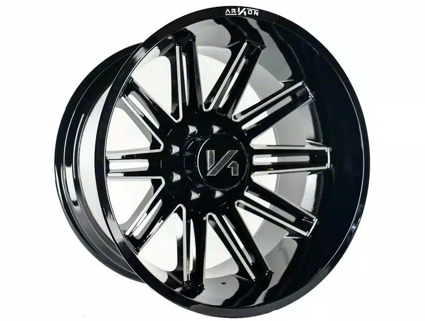 Arkon Off-Road Churchill Gloss Black Milled 6-Lug Wheel; 20x10; -25mm Offset. The Arkon Off-Road Churchill Gloss Black Milled 6-Lug Wheel; 20x10; -25mm Offset features a sleek and modern design that enhances the overall aesthetic of any vehicle. Its brushed gunmetal finish adds a touch of sophistication and complements various vehicle styles. This wheel's premium construction ensures durability and a robust appearance.