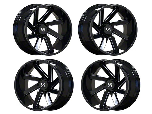 Arkon Off-Road Lincoln Gloss Black with Milled Edges 6-Lug 4-Wheel Kit; 22x12; -51mm Offset exudes sophistication with its finish, offering a sleek and modern appeal to any vehicle it adorns. The design is meticulously crafted to enhance the aesthetic of your vehicle, giving it a distinctive and upscale look. Perfect for those seeking to elevate their vehicle's style, this wheel blends seamlessly with both contemporary and classic vehicle designs, making it a versatile choice for a wide range of vehicles. Its robust construction ensures durability, making it a reliable choice for drivers who value both style and quality.