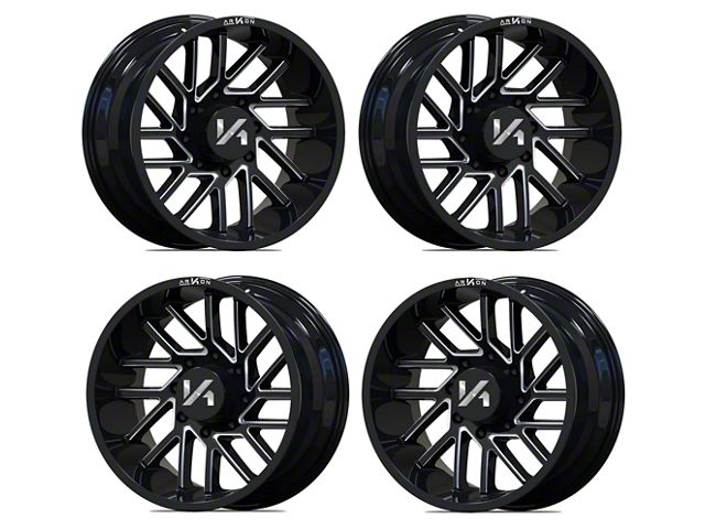 Arkon Off-Road Mandela Gloss Black with Milled Edges 6-Lug 4-Wheel Kit; 20x10; -25mm Offset exudes sophistication with its finish, offering a sleek and modern appeal to any vehicle it adorns. The design is meticulously crafted to enhance the aesthetic of your vehicle, giving it a distinctive and upscale look. Perfect for those seeking to elevate their vehicle's style, this wheel blends seamlessly with both contemporary and classic vehicle designs, making it a versatile choice for a wide range of vehicles. Its robust construction ensures durability, making it a reliable choice for drivers who value both style and quality.