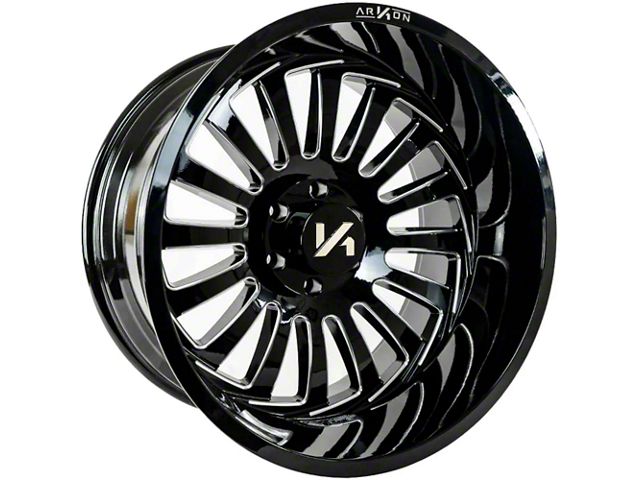 Arkon Off-Road Alexander Gloss Black Milled 6-Lug 4-Wheel Kit; 22x12; -51mm Offset exudes sophistication with its finish, offering a sleek and modern appeal to any vehicle it adorns. The design is meticulously crafted to enhance the aesthetic of your vehicle, giving it a distinctive and upscale look. Perfect for those seeking to elevate their vehicle's style, this wheel blends seamlessly with both contemporary and classic vehicle designs, making it a versatile choice for a wide range of vehicles. Its robust construction ensures durability, making it a reliable choice for drivers who value both style and quality.