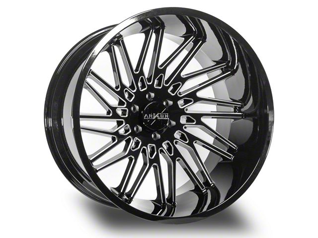 Arkon Off-Road Apollo Gloss Black Milled 6-Lug Wheel; 24x14; -81mm Offset The Arkon Off-Road Apollo Gloss Black Milled 6-Lug Wheel combines a sleek, sophisticated design with premium construction that enhances the visual appeal and complements a wide range of vehicle styles. This wheel is perfect for those seeking to make a bold statement while maintaining elegance and robustness.