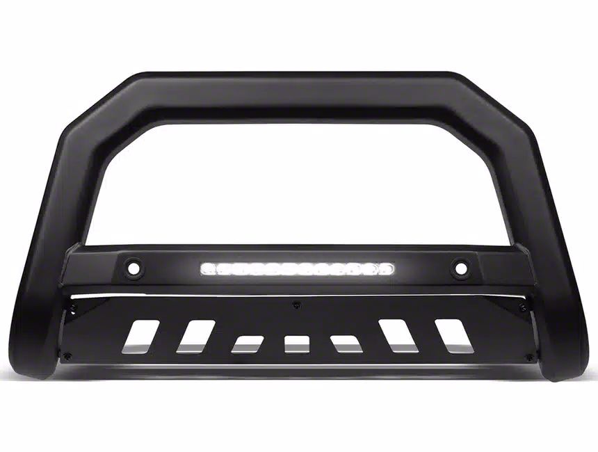 Aggressive Design. This rugged and stylish Armordillo AR-T Series Bull Bar with LED Light Bar; Matte Black is the perfect addition to your Frontier, offering both enhanced protection and a striking appearance. It features a robust construction that is built to withstand the demands of off-road adventures and everyday driving. Crafted from high-quality steel and finished with a durable matte black coating, this bull bar not only adds a layer of defense but also adds a touch of aggression to your Frontier's front end.