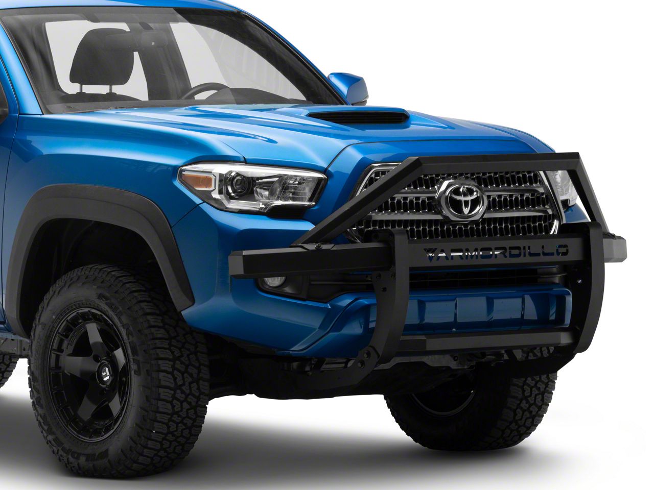 Application. This Matte Black Armordillo AR2 Pre-Runner Grille Guard is made to fit 2016-2023 Toyota Tacoma models.