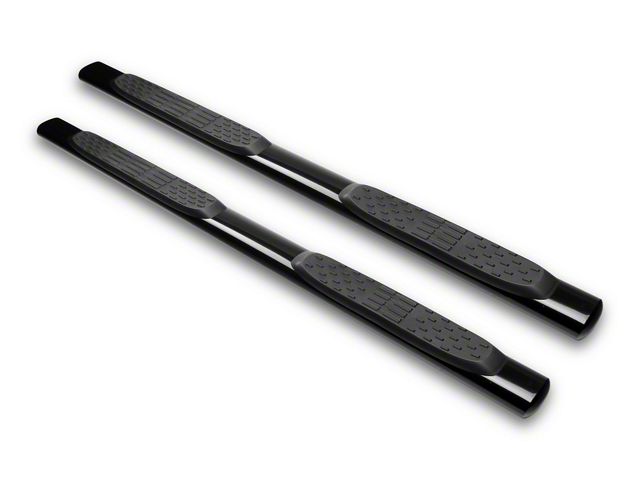 Round Design. The rounded style side step bars are designed specifically for the vehicle to ensure the perfect fit. Options like 3-Inch, 4-Inch, and 5-Inch diameters are available for all cab lengths, as well as all Wheel-to-Wheel lengths. They are available with a powder coat or stainless steel. A mandrel bend ensures that the tubes maintain their shape and quality. Also, a UV-resistant step pad is included with each tube to keep wet or dirty shoes from slipping.