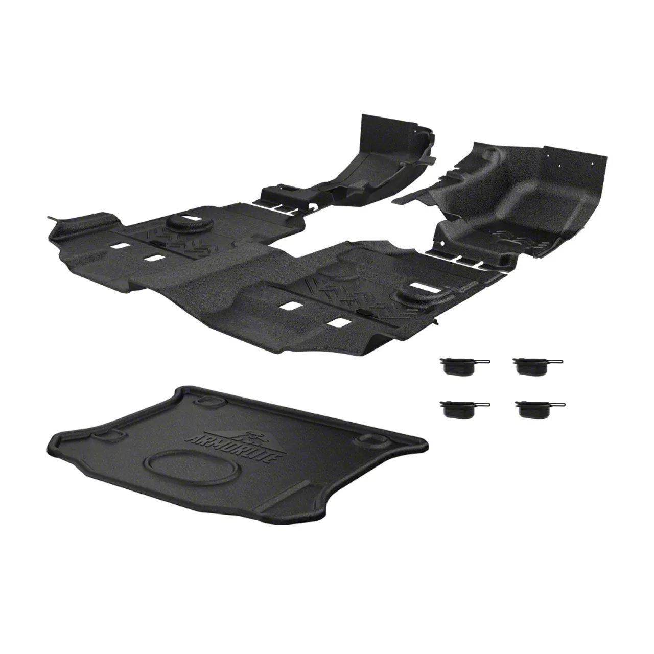 Full Interior Floor Protection. The Armorlite Complete Replacement Front, Rear and Cargo Floor Kit is engineered to replace your factory carpet with a more durable, easy-to-maintain solution. Designed for Jeep Wrangler JK 4-Door models, this flooring system offers superior protection against wear, mud, and moisture, while reducing heat and noise inside the cabin. It's the ultimate flooring upgrade for off-roaders and daily drivers alike.