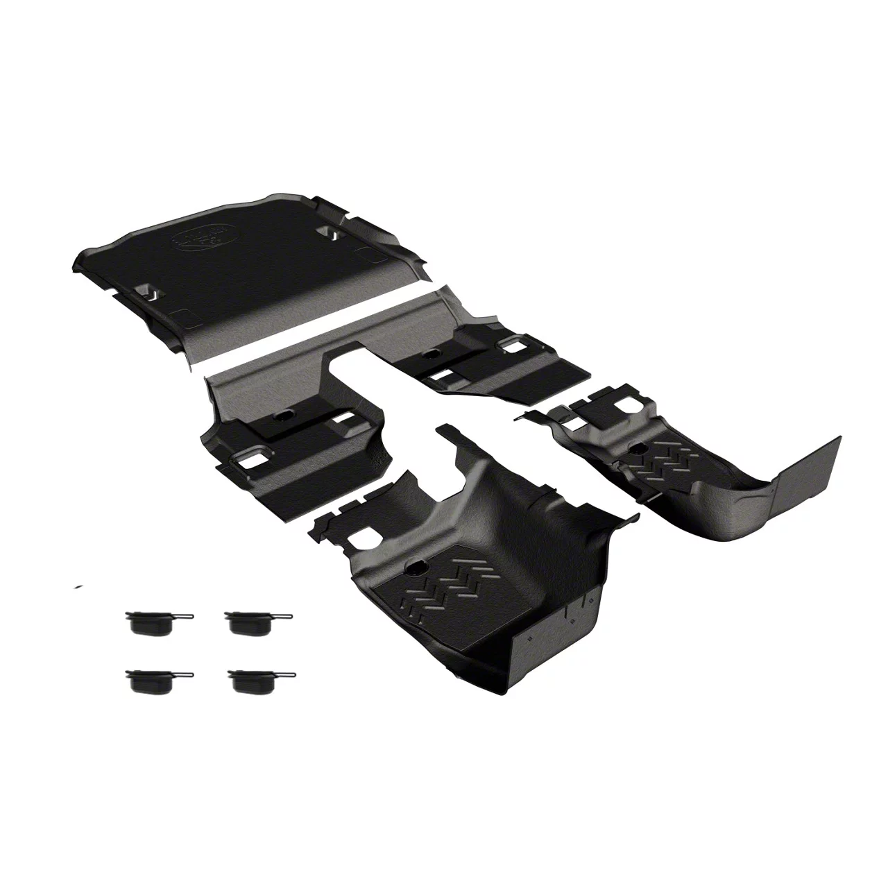 Complete replacement front and rear flooring system for 2011-2018 Jeep® Wrangler JK (2Dr) models. Easy to install, easy to clean, reduces cabin heat and noise, and tougher than any floor on the trail for scratch and mar resistance.