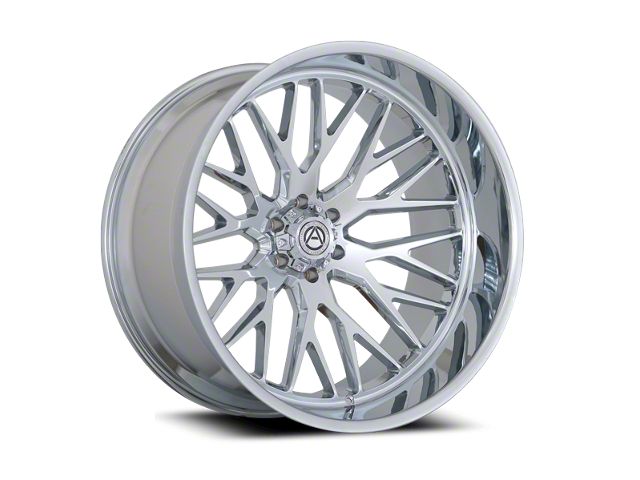 The 26x14 Artem NOVUS Chrome Wheel; 26x14; -76mm Offset is completed in a polished chrome finish that will make everyone green with envy. For added protection and good looks, this wheel features a durable clear coat that is tough enough to stand up against the hazards of everyday driving.