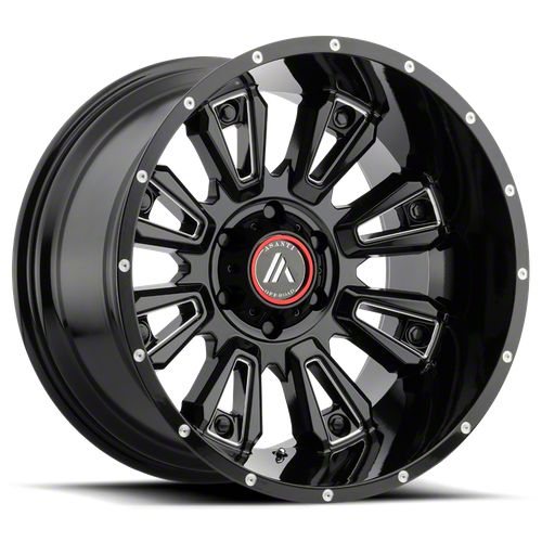The 20x9 Asanti Blackhawk Gloss Black Milled 6-Lug Wheel; ; -12mm Offset is given a gloss black finish to keep your wheel looking as sharp as its design. The wheel's milled steel accents are where it really shines through, literally.