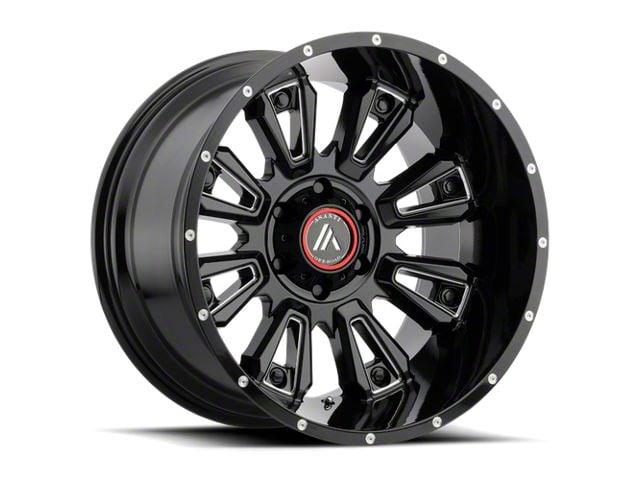 The 20x9 Asanti Blackhawk Gloss Black Milled 6-Lug Wheel; ; -12mm Offset is given a gloss black finish to keep your wheel looking as sharp as its design. The wheel's milled steel accents are where it really shines through, literally.