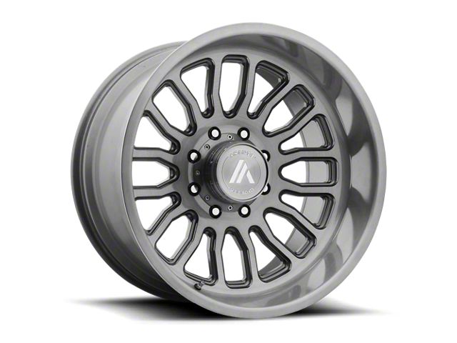 Asanti Workhorse Titanium Brushed Wheel; 20x10 The Asanti Workhorse Titanium Brushed Wheel combines a sleek, sophisticated design with premium construction that enhances the visual appeal and complements a wide range of vehicle styles. This wheel is perfect for those seeking to make a bold statement while maintaining elegance and robustness.