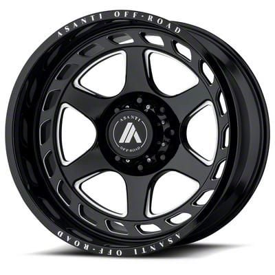 This 20x12 Asanti Anvil Gloss Black Milled 6-Lug Wheel is completed in a high-quality gloss black finish with steel milled accents that will create a striking appearance. There's a durable clear coat that protects against driving hazards.