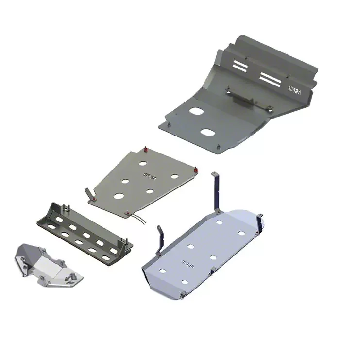 Lightweight and Durable Aluminum Construction. Constructed from high-quality bare aluminum, this skid plate system combines lightweight properties with exceptional durability. The aluminum construction resists corrosion, ensuring long-lasting performance even in harsh conditions. Engineered for strength, these skid plates offer maximum protection without adding unnecessary weight to your vehicle. With pre-drilled holes for easy drainage and maintenance access, this system is designed for both functionality and convenience, making it a must-have for serious off-road enthusiasts.