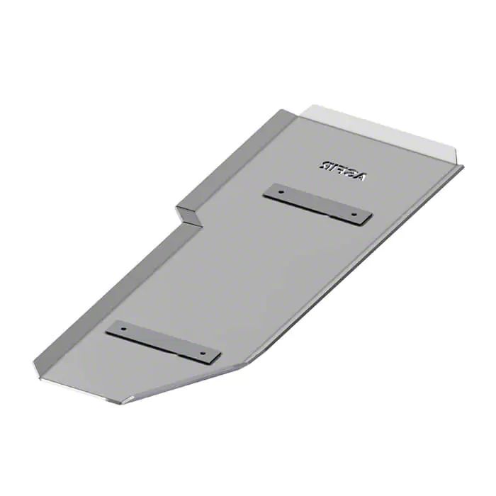Construction and Appearance. With a raw metal finish, this skid plate is crafted from precision laser-cut aluminum and reinforced with stiffening ribs for added structural integrity. Integrated air vents aid in heat dissipation, while drainage holes prevent the accumulation of water and small debris. Zinc-coated steel brackets ensure strong and corrosion-resistant mounting hardware, giving the plate both resilience and reliability under extreme conditions.