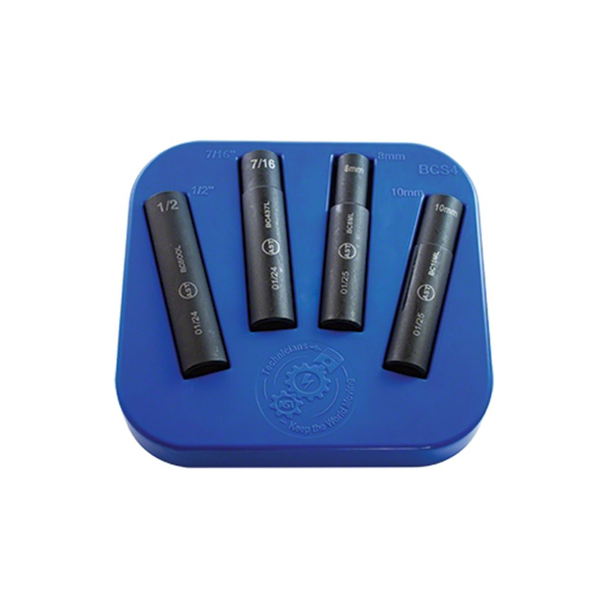 • Set includes 8mm, 10mm, 7/16 inch and 1/2 inch sockets
