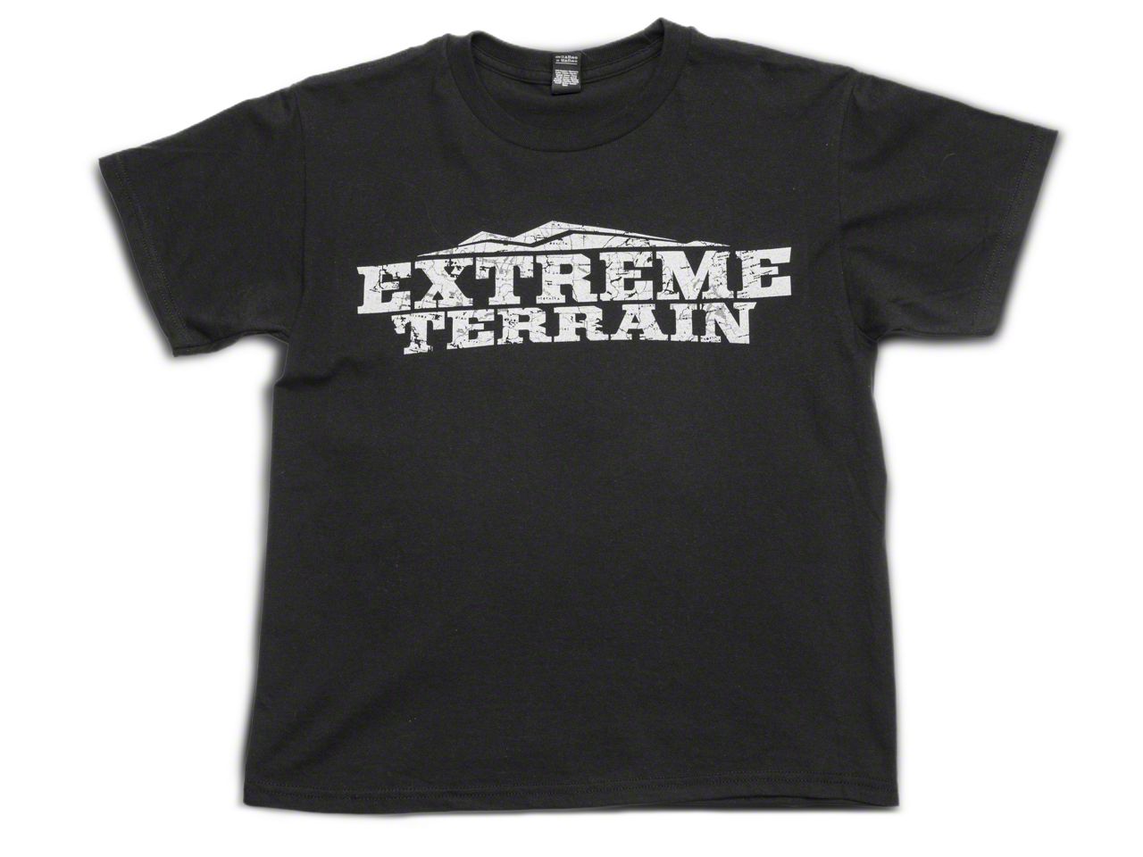 Atlas Design. This eye-catching black Short Sleeved T-Shirt is a must have for all off-road enthusiast. Featuring the ExtremeTerrain logo cut from the page of an Atlas, this Graphic Tee makes the ideal gift for the hardcore off-roading kid in your life.