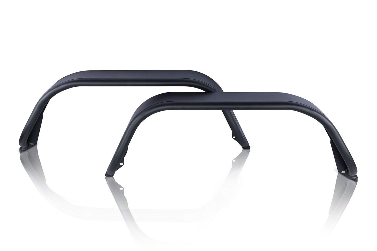 Construction and Appearance. Constructed from E-coated 12-gauge steel, these fender flares feature a flat plated style with a 2mm thickness. The textured black powder-coated finish not only adds to the rugged look but also provides durability and resistance to the elements.