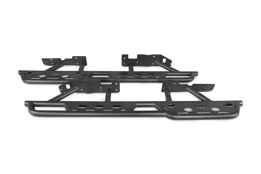 Trail-Ready Rocker Protection. The Attica 4x4 Apex Series Rock Sliders are built to defend your Tacoma's rocker panels from trail damage while improving clearance with their upward angle and kick-off design. Perfect for off-road enthusiasts, they combine rugged functionality with sleek styling.