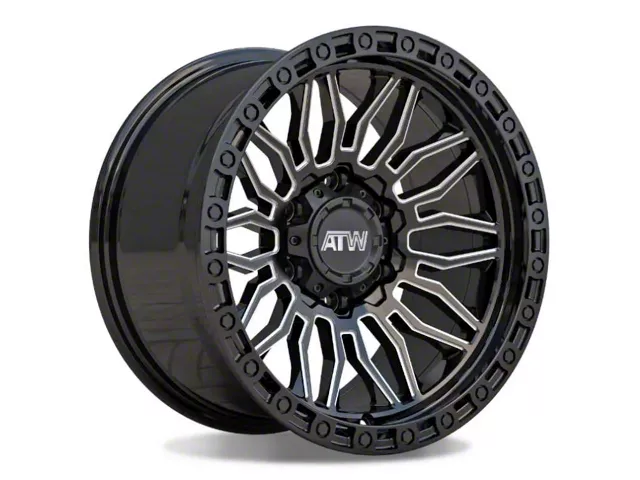 ATW Off-Road Wheels Nile Gloss Black with Milled Spokes 6-Lug Wheel; 20x9; 10mm Offset. The ATW Off-Road Wheels Nile Gloss Black with Milled Spokes 6-Lug Wheel offers a striking balance of style and refinement. Its unique design accentuates the vehicle's aesthetic, while the premium construction underscores its robust nature. This wheel is a perfect choice for those seeking both elegance and a strong visual statement.