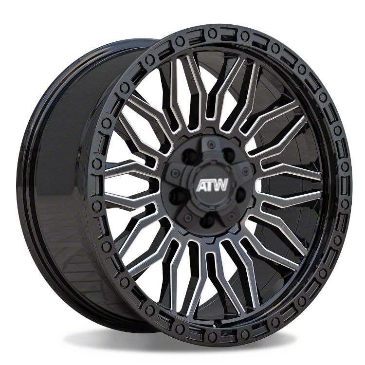 ATW Off-Road Wheels Nile Gloss Black with Milled Spokes Wheel; 20x10. The ATW Off-Road Wheels Nile Gloss Black with Milled Spokes Wheel offers a striking balance of style and refinement. Its unique design accentuates the vehicle's aesthetic, while the premium construction underscores its robust nature. This wheel is a perfect choice for those seeking both elegance and a strong visual statement.