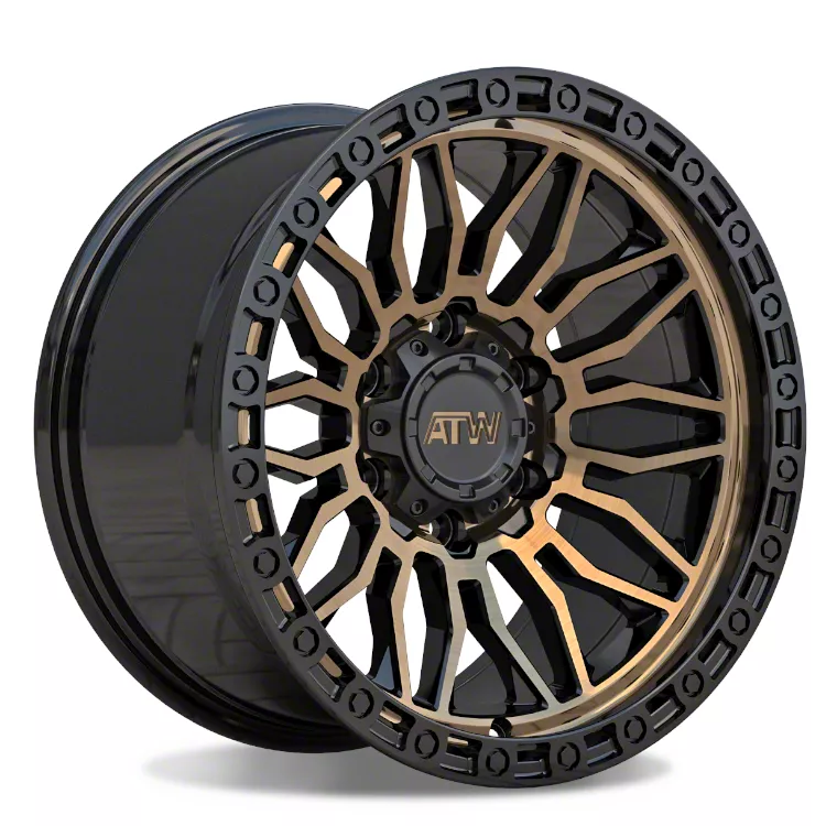 ATW Off-Road Wheels Nile Satin Black with Machined Bronze Face Wheel; 17x9. The ATW Off-Road Wheels Nile Satin Black with Machined Bronze Face Wheel offers a striking balance of style and refinement. Its unique design accentuates the vehicle's aesthetic, while the premium construction underscores its robust nature. This wheel is a perfect choice for those seeking both elegance and a strong visual statement.