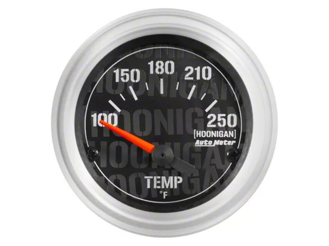 Description. The AutoMeter X Hoonigan gauge collaboration started with Head Hoonigan in Charge, Ken Block's 1965 Ford Mustang Hoonicorn RTR, made famous by the Gymkhana SEVEN installment of his viral video series. A set of bespoke gauges were created for the project , and we are now proud to announce their availability for your own tire slaying creations! Built upon proven AutoMeter Pro-Comp Ultra-Lite internals, these instruments are fitted with unique Hoonigan Industries designed cosmetics which include matte black, Hoonigan 'stamp' dials with stencil font, two color fluorescent red and matte black pointers, and satin silver 'Monster' bezels. The AutoMeter X Hoonigan instrument offering includes standard 2Ó gauges, 3 3/8Ó speedometer and tachometer, as well as a 5Ó in-dash tachometer.