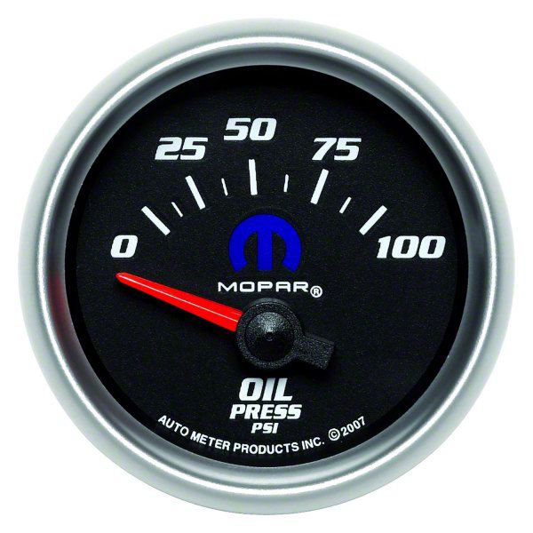 Description. Quite possibly the most critical vital to monitor, engine oil pressure can mean the difference between making it home and needing to replace the engine. The patented air core meter movement provides the durability and accuracy that you expect from the AutoMeter name. Throughout 57 years of building the world’s best competition instruments, this meter movement has been the engine powering the machine that sets the benchmark. A single wire, 1/8” NPT oil pressure sender is included. Officially licensed Mopar product.