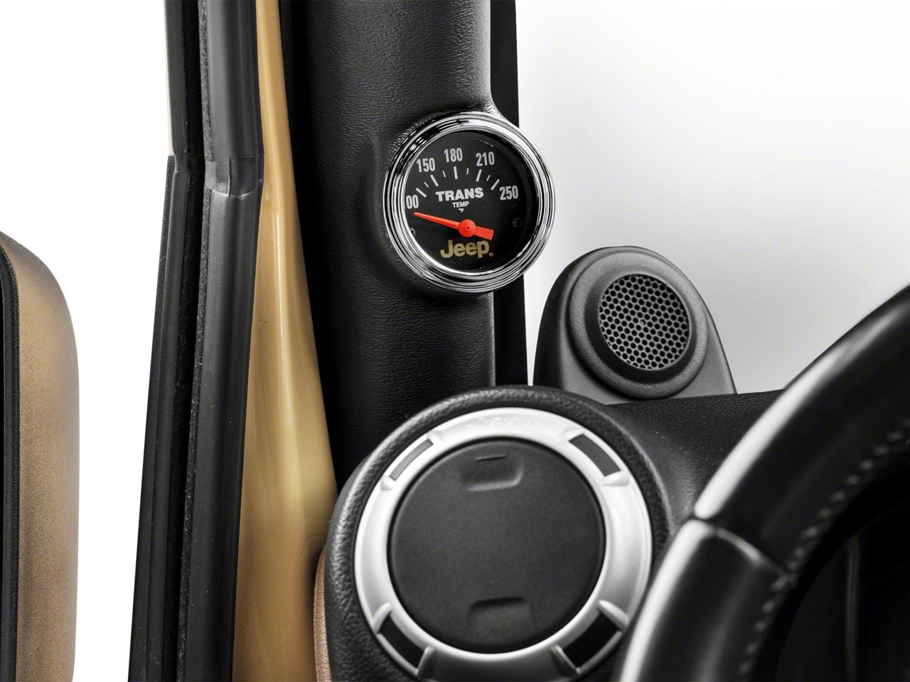 Transmission Temperature. The Auto Meter Transmission Temperature Gauge – Electrical – Jeep Logo has a measuring capability of between 100 and 250 degrees Fahrenheit. It ranks among the top short-sweep style gauges that are precise for accurate temperature measurements.