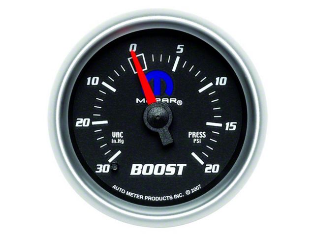 Description. The standard in the industry, AutoMeter’s Mechanical Boost/Vac Gauges have found their way into more builds than any other. Using a patented, high precision bourdon tube meter movement, there isn’t another gauge on the market that can lay claim to the levels of accuracy or durability you’ll find here. A simple 1/8” NPT pressure connection requires no electrical hookup for operation. Includes 1/8” NPT fittings and nylon line kit. Officially licensed Mopar product.
