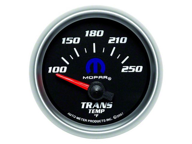 Description. Transmission fluid temperature is the single biggest contributing factor to the lifespan of your automatic transmission. Having an accurate, realtime measurement allows you to know when to downshift or when to take your foot out of it. Whether you’re towing or simply trying to harness the power of a built or boosted motor, AutoMeter’s Trans Temp Gauge will give you the most accurate possible measurement for the exact temp of your trans fluid. A single wire 1/8” NPT temperature sender included to be installed in your transmission, transmission pan or with an optional transmission cooler line manifold is available for easy installation into a transmission cooler hard line. Officially licensed Mopar product.