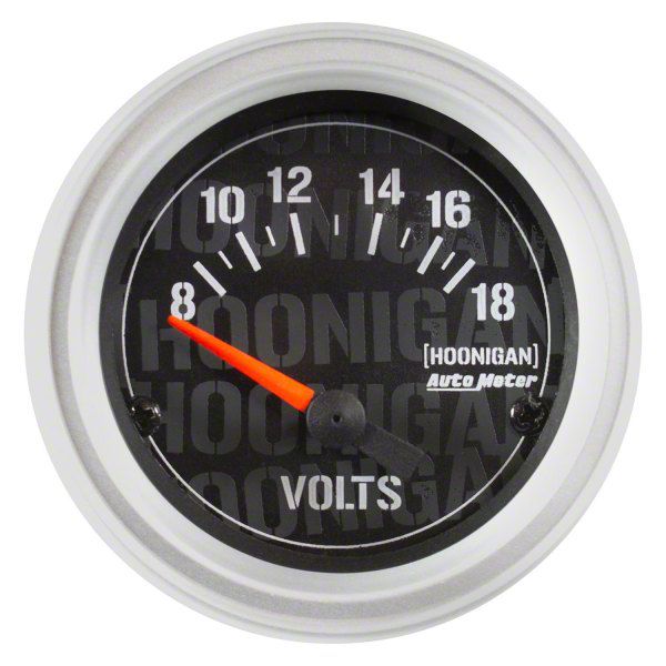 Description. The AutoMeter X Hoonigan gauge collaboration started with Head Hoonigan in Charge, Ken Block's 1965 Ford Mustang Hoonicorn RTR, made famous by the Gymkhana SEVEN installment of his viral video series. A set of bespoke gauges were created for the project , and we are now proud to announce their availability for your own tire slaying creations! Built upon proven AutoMeter Pro-Comp Ultra-Lite internals, these instruments are fitted with unique Hoonigan Industries designed cosmetics which include matte black, Hoonigan 'stamp' dials with stencil font, two color fluorescent red and matte black pointers, and satin silver 'Monster' bezels. The AutoMeter X Hoonigan instrument offering includes standard 2Ó gauges, 3 3/8Ó speedometer and tachometer, as well as a 5Ó in-dash tachometer.