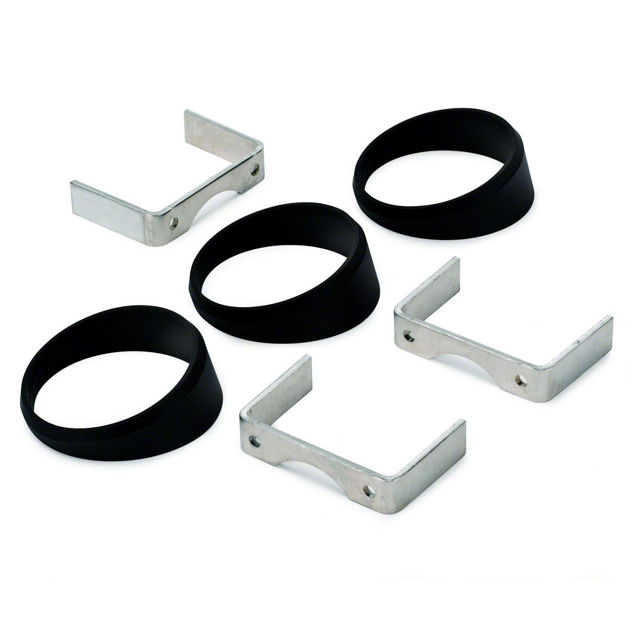 Includes three black composite angle rings and matching aluminum mounting brackets.