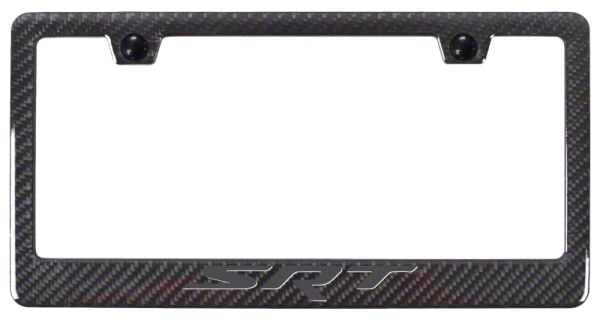 Premium License Plate Frame. The Autogold SRT Carbon Fiber License Plate Frame features a black ABS plastic gloss finish with a real carbon fiber face, offering a stylish and sleek look. Its standard frame design with a wide bottom and "Ghost" design enhances the visual appeal of your vehicle.