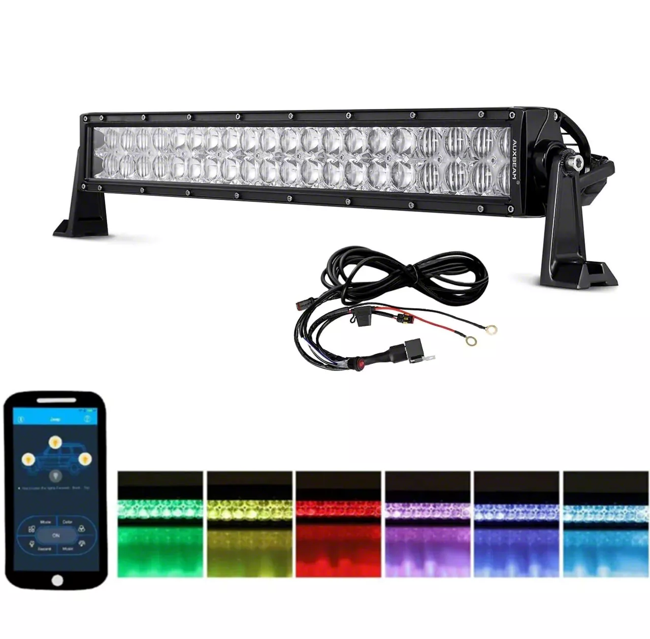Dynamic LED Lighting Solution. The Auxbeam V-Series LED Light Bar is a cutting-edge lighting accessory designed for those seeking enhanced visibility and stylish aesthetics. Its curved 2-row design and 22-inch length provide expansive light coverage, perfect for illuminating dark trails or night roads. With Bluetooth app control, this light bar lets users easily manage RGB color settings, bringing both functionality and a customizable experience to any adventure.