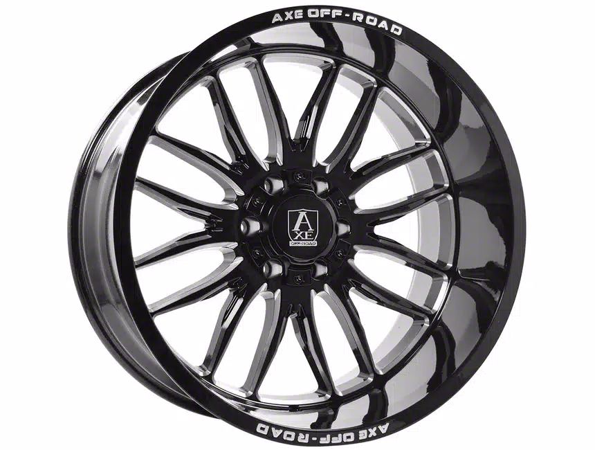The 20x10 Axe Wheels Hades Gloss Black Milled 6-Lug Wheel is completed in a high-quality gloss black finish, with steel milled accents. Thanks to a durable clear coat, the finish looks amazing and also protects against the rigors of driving.
