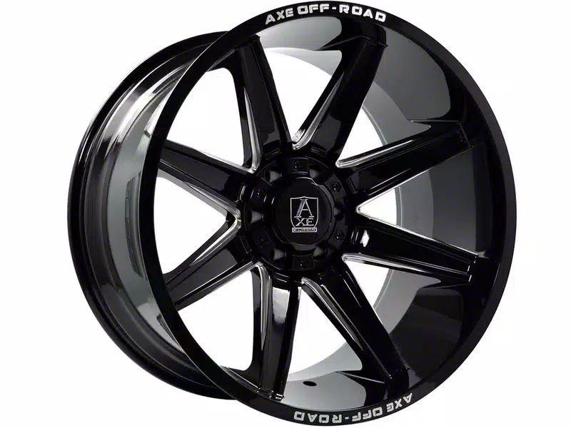 The 20x10 Axe Wheels Atremis Gloss Black Milled 6-Lug Wheel; 20x10; -19mm Offset is completed in a high-quality gloss black finish with milled accents that will make others green with envy. For added protection and good looks, this wheel features a durable clear coat that can withstand the hazards of daily driving.