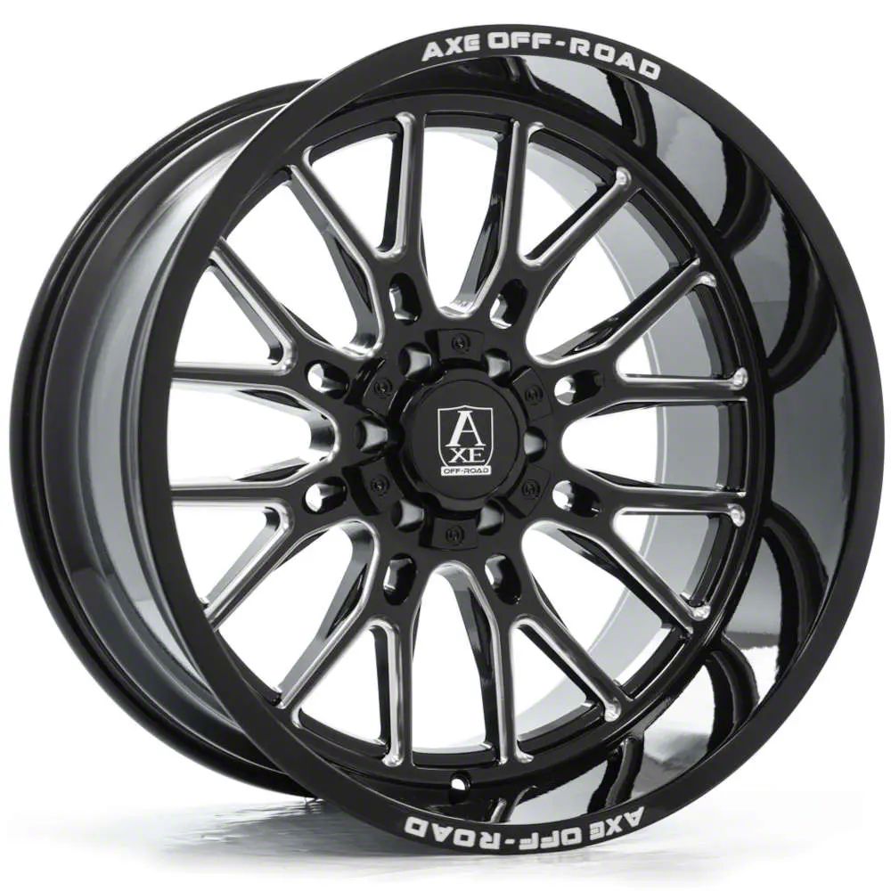 This 20x10 Axe Wheels Atlas Gloss Black Milled 6-Lug Wheel; 20x10; -19mm Offset is completed in a high-quality gloss black finish with steel milled accents that will be the envy of everyone. For added protection and looks, there is a clear coat designed to handle whatever the road, or beyond, throws at it.
