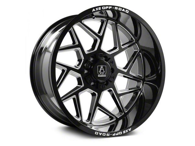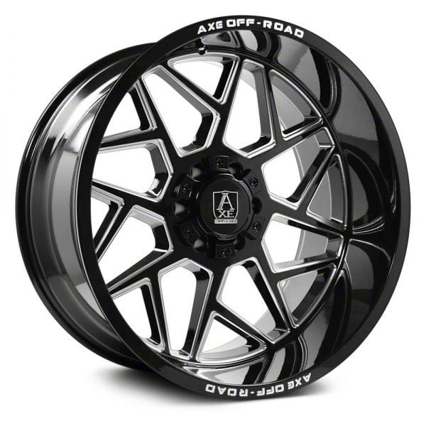 Axe Wheels Nemesis Gloss Black Milled 6-Lug Wheel; 22x12; -44mm Offset delivers a bold and modern aesthetic, ideal for enthusiasts seeking a refined yet assertive look for their vehicle. With its standout design and distinct finish, this wheel enhances the vehicle's visual stance and street presence. The precise craftsmanship and premium aluminum build reflect Axe Wheels' dedication to quality and distinctive design. Whether parked or in motion, this wheel draws attention with its clean, aggressive styling.