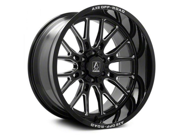 Axe Wheels Atlas Gloss Black Milled 6-Lug Wheel; 22x12; -44mm Offset. Enhance your vehicle's look with the Axe Wheels Atlas Gloss Black Milled 6-Lug Wheel. This premium wheel adds a touch of elegance and class to your vehicle, complementing its sophisticated aesthetic.