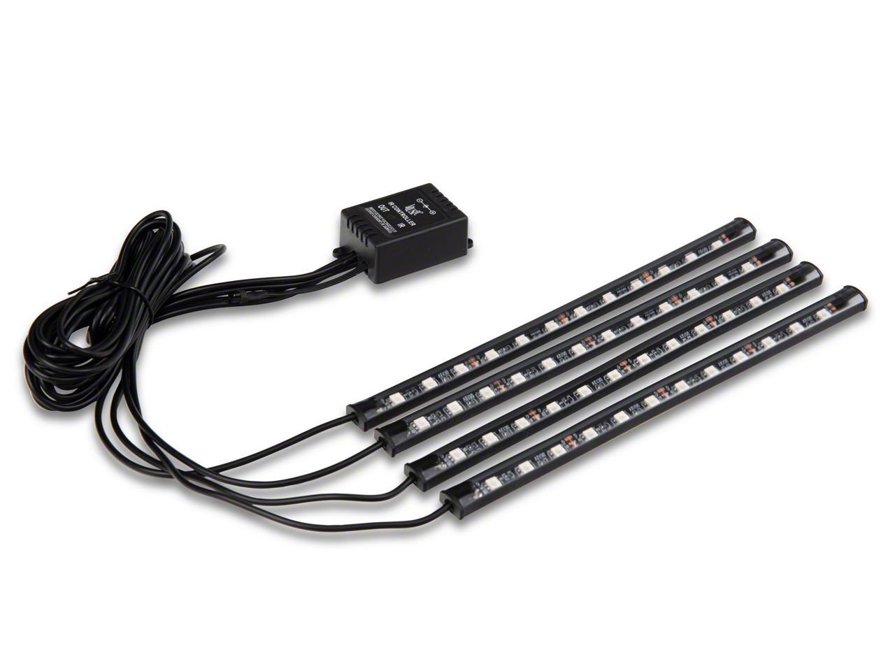 Custom Interior Lighting. Add unique custom lighting effects to your vehicles interior with an Axial LED Interior Courtesy Lighting Kit. Each kit includes a wireless remote controller that will allow you to select different color options and modes. Light options include a rainbow's array of colors, as well as strobe and a soft fading, "breathing" option.