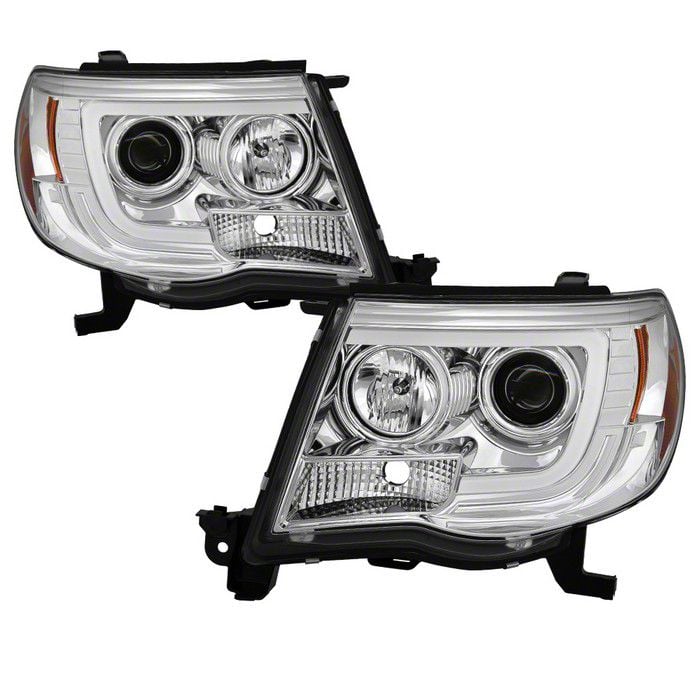 Includes Low and High Beams for Increased Visibility. Make your driving safer than ever before by replacing the factory headlights of your Toyota Tacoma with these Chrome V2 Projector Headlights with Daytime Running Light. Featuring low beams to make it easier to spot oncoming vehicles and high beams to increase your seeing distance, this pair of halogen headlights is a definite upgrade over your stock exterior lighting.