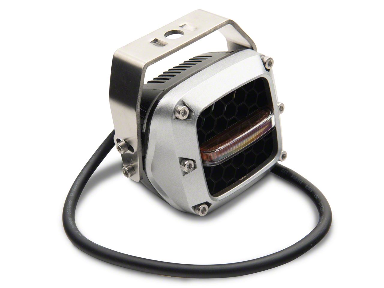 Powerful Work Light. Small, but powerful this Axial 4-Inch LED Work Light will help you prepare for late nights at the work site or after dark trail runs. Perfect for use on all models of Jeep Gladiators, this Light features a driving beam pattern giving you plenty of light coverage on the trail and on the work site. The honeycomb style grille gives this Work Light a rugged appearance, while the integrated amber running light will be sure to catch the attention of distracted drivers day or night.
