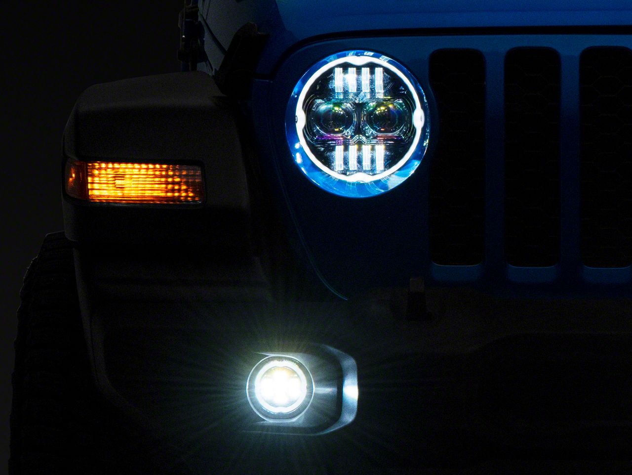 Updated LED Styling. Raxiom's Axial Series 9-Inch Angel Eye LED Headlights and LED Fog Lights are an excellent way to add an updated appearance to your 2020-2026 Jeep Gladiator JT, all while improving your nighttime visibility. With an impressive integrated Angel Eye Daytime Running Light (DRL) design, these Headlights and Fog Lights will give your Gladiator a whole new look.