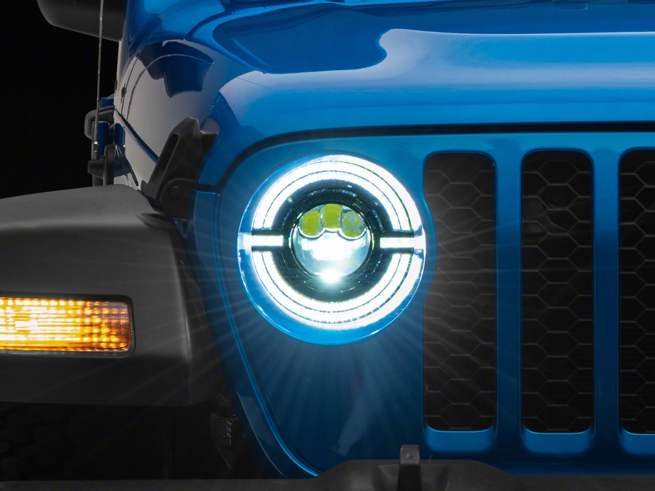 Modern Styling. An excellent way to add modern styling to your Jeep Gladiator JT is with a pair of Axial 9-Inch LED Angel Eye Headlights. These Projector style Headlights feature LED "Angel Eye" halos and accent lights to give your JT an updated appearance.