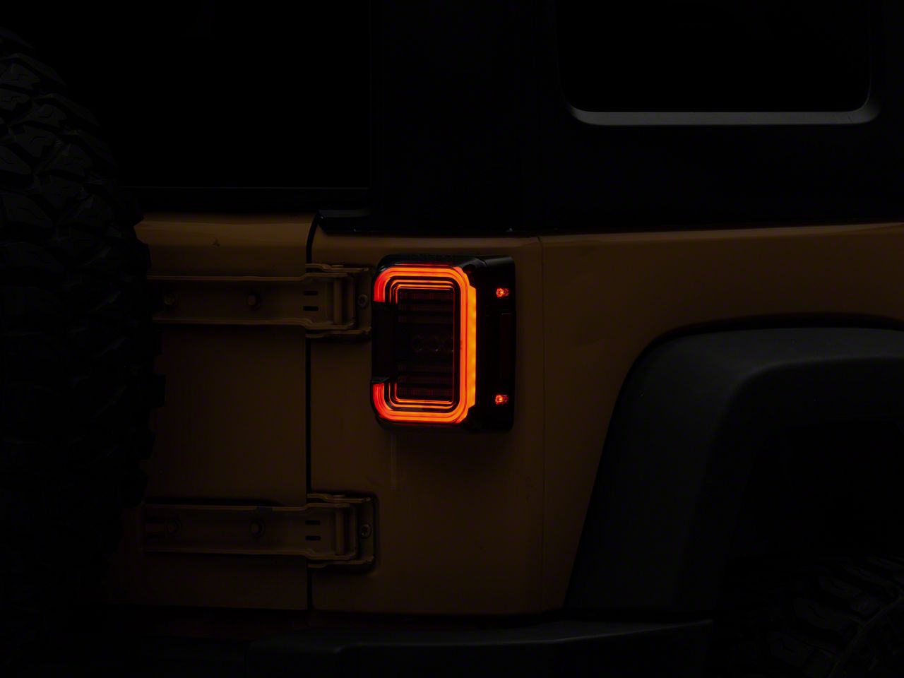 Modern Styling. A pair of Axial Halo LED Tail Lights is an excellent way to add a modern appearance to your 2007-2018 Jeep JK. Featuring unique "C" shaped running light design, these Axial Tail Lights will make an impactful statement to the exterior appearance of your JK. Whether your Jeep is your daily driver or your weekend toy, these Halo LED Tail Lights will be sure to set your JK Wrangler apart from all the rest.