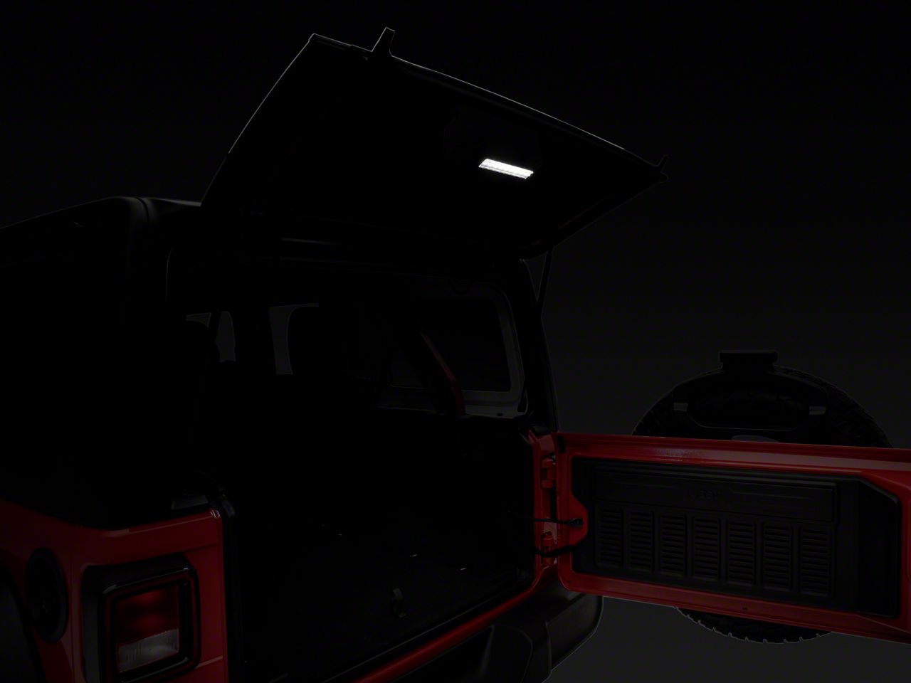 LED Cargo Lighting. Illuminate the cargo area of your JL Wrangler with an Axial LED Tailgate Hatch Light. With ultra bright LED lights this Tailgate Hatch Light makes it easy to see the tools or cargo in the rear of your JL even on the darkest nights. This Axial Tailgate Light is designed to be activated with the supplied on/off switch.