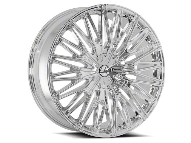 This 22x8.5 Azara AZA-522 Chrome 5-Lug Wheel; 22x8.5; 38mm Offset is completed in a high-quality chrome finish that will make everyone take notice. Using a 3-stage process involving copper, nickel and chrome, you get a sensational bright wheel that can withstand the rigors of daily driving.