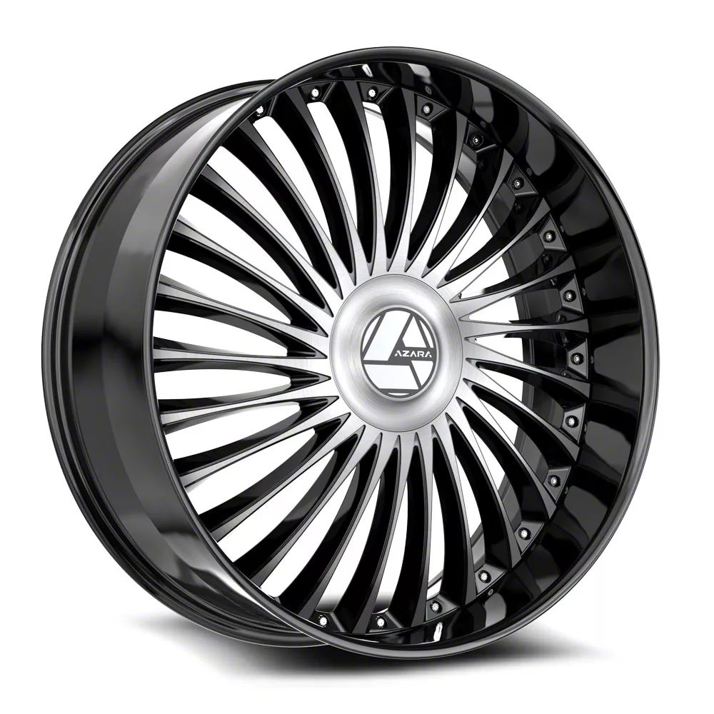 This 28x9.5 Azara AZX-103 Gloss Black and Machined 6-Lug Wheel; 28x9.5; 22mm Offset is completed in a high-quality gloss black finish with steel machined accents that will make everyone take notice. For added looks and strength, the wheel features a durable clear coat that withstands the rigors of daily driving.