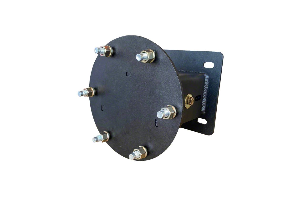 Installation. This tire carrier features an easy bolt-on installation, allowing for quick and secure attachment to the Backwoods Swing-Out Rear Bumper without requiring major modifications.
