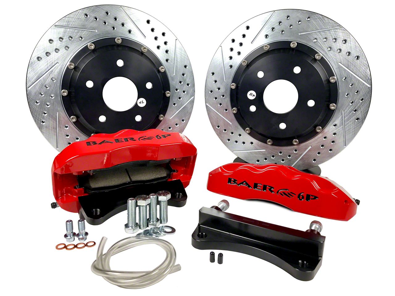 Cross-Drilled & Slotted Rotors. The rotors included Baer Front Pro+ Brake Kit are cross-drilled and slotted to offer no-inertia braking when in contact with the pads. The design also dissipates away heat, maintaining operation temperatures at the low.