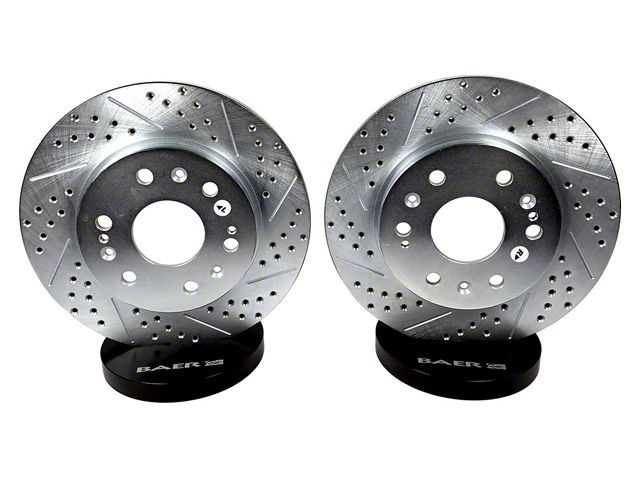 High-Performance Stopping Power. The Baer Sport Rotors deliver exceptional braking performance with their premium-grade construction and advanced design. Engineered for the front pair of your vehicle, these rotors are drilled and slotted to enhance cooling and improve braking efficiency. Their modern design not only boosts stopping power but also adds an upgraded aesthetic to your wheels.